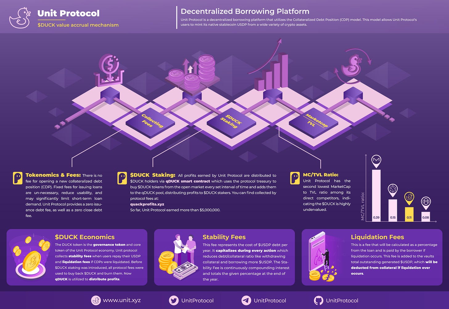 Allowing $DUCK holders to capture value from Unit Protocol operations was always important for us. That is why in the early days we used collected fees to buyback DUCK from the market and burn them.